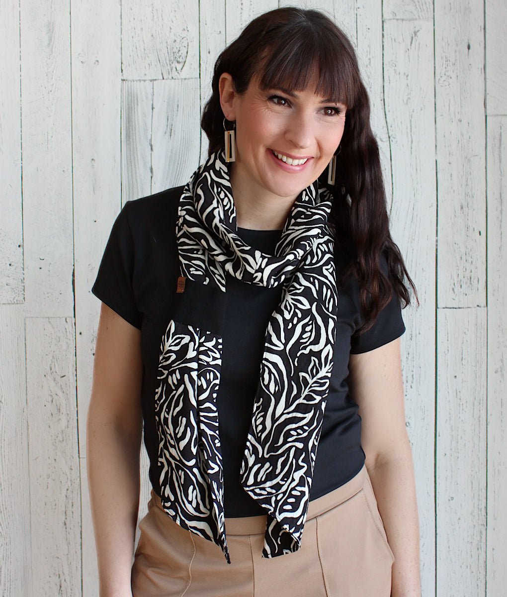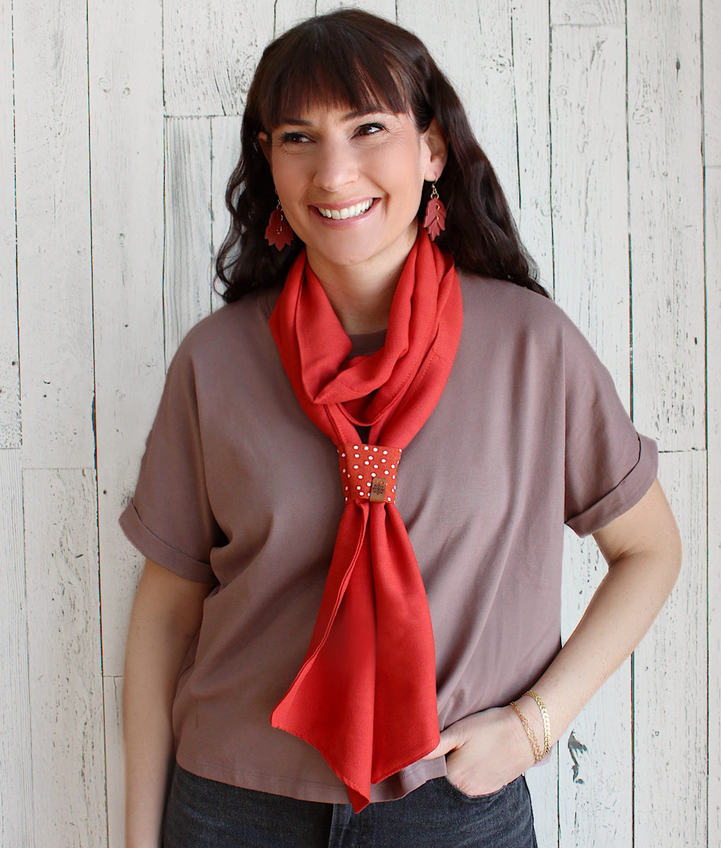 Le foulard Nomade est confectionné dans un tissu ultra doux et ultra léger, parfait pour l’été. C’est l’accessoire par excellence pour rehausser vos looks en toute simplicité. Grâce à son petit anneau, vous pouvez le porter de plusieurs façons tout en assurant un maintien parfait. Polyvalent, pratique et élégant, il vous accompagne partout. Le tout est créé dans notre atelier à Montréal, avec amour.