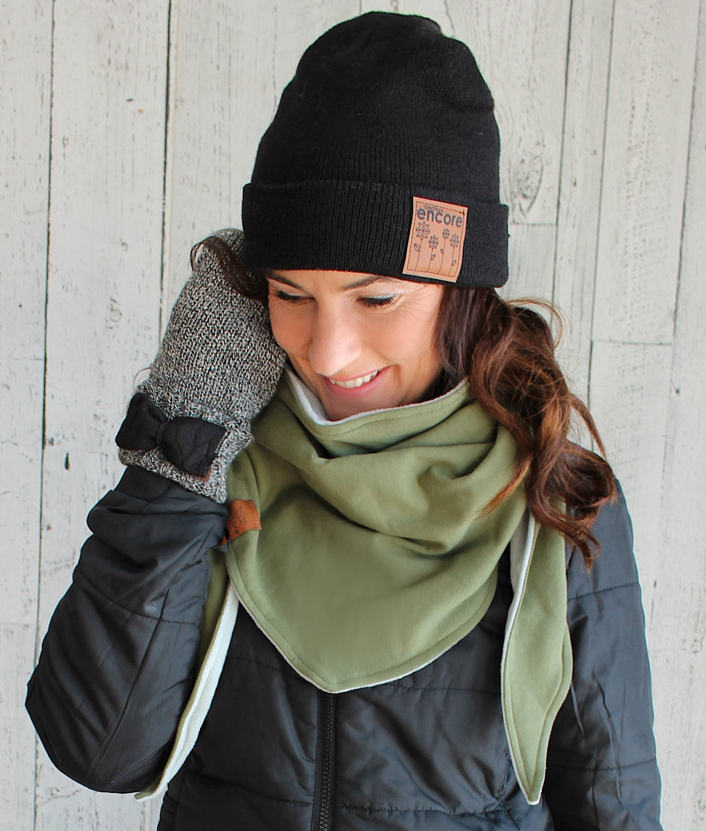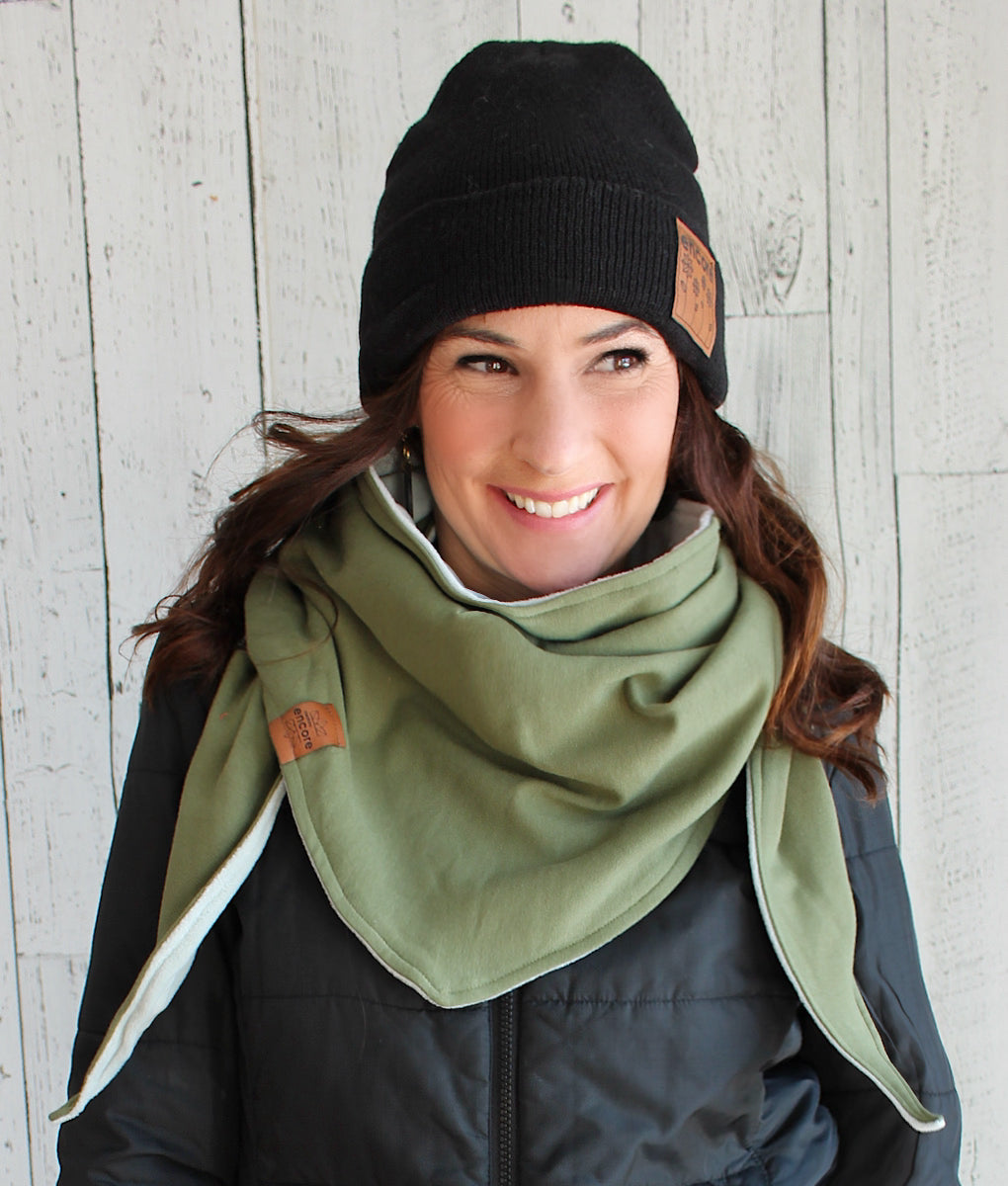 Foulard triangulaire douillet, parfait pour affronter le froid avec style. Entièrement doublé en polar pour une chaleur incomparable, son extérieur en doux tricot lui confère une allure élégante et confortable. Il suffit de croiser les pointes à l’avant et de les glisser dans les petites gances pratiques pour qu’il reste bien en place toute la journée. Un accessoire indispensable pour vous garder bien au chaud cet hiver. La tuque et les mitaines assorties sont disponibles dans la section accessoires.
