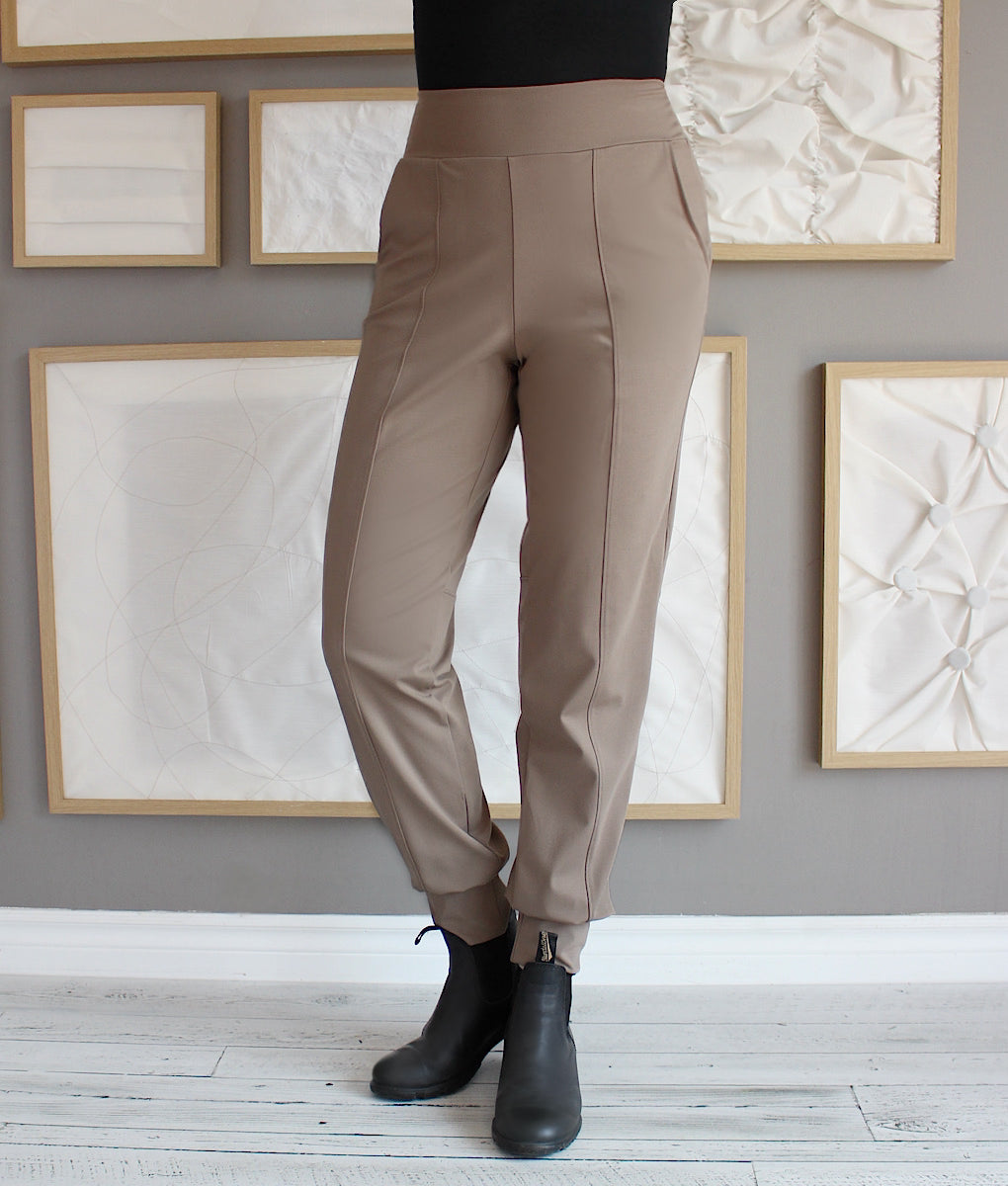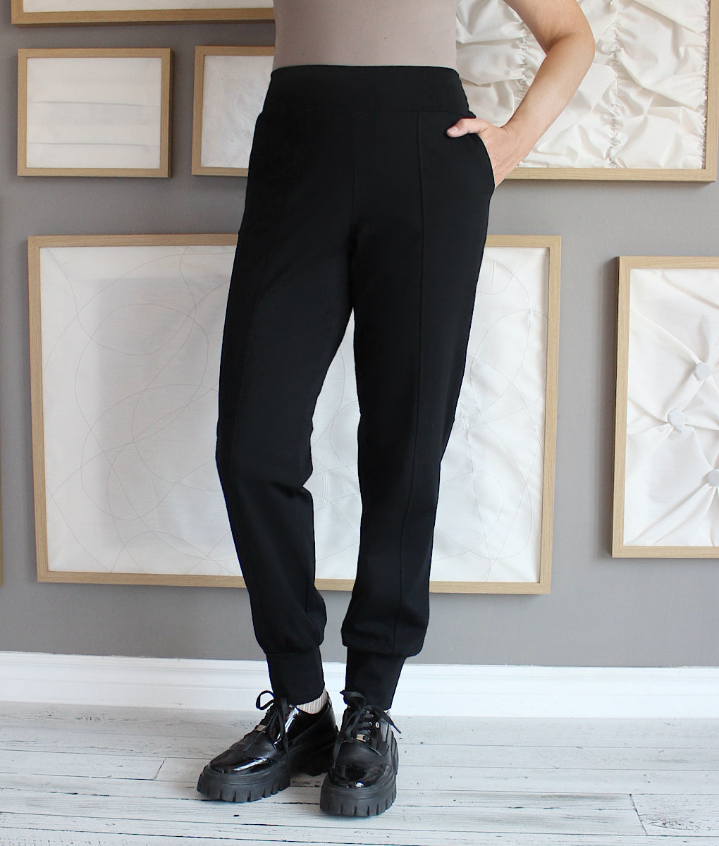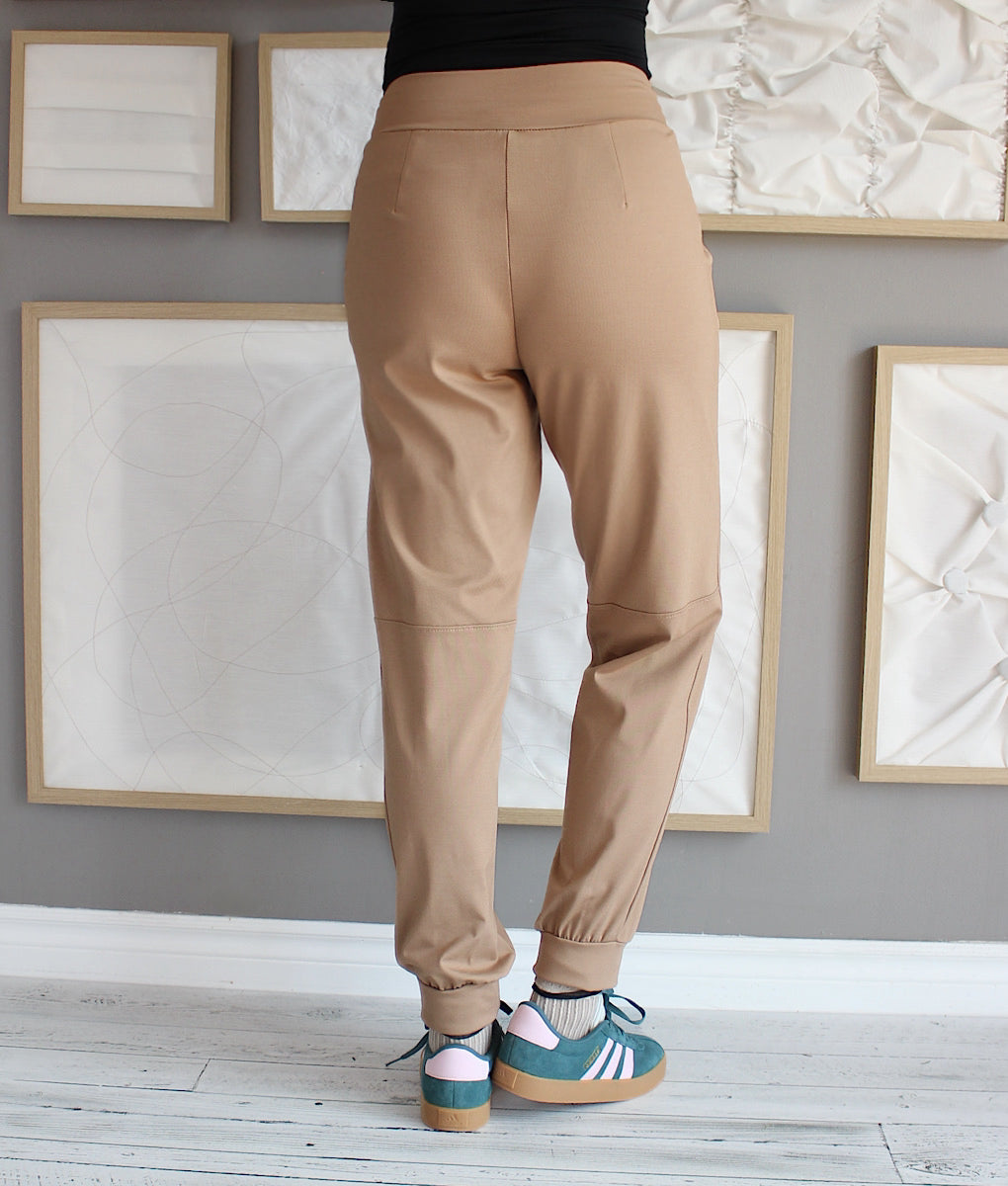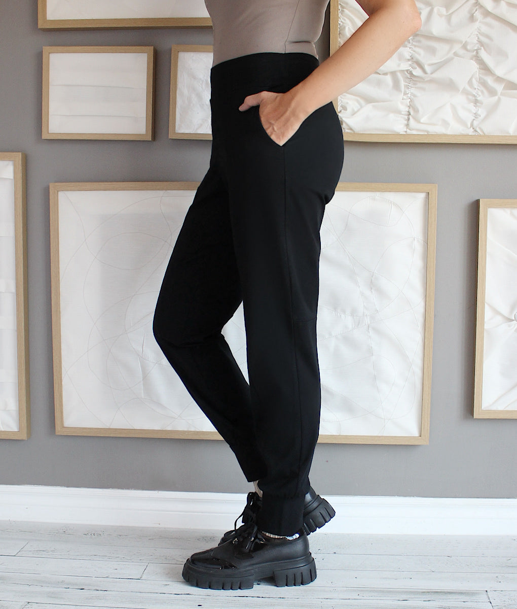 Discover our elegant and comfortable jogger style pants, perfect for combining style and relaxation. Made from a soft, stretchy fabric, it ensures optimal freedom of movement. Its high waist, side pockets and exposed seam design add a sophisticated touch. Ideal for casual days or for a smart-casual look around town, these pants are a must-have for your wardrobe. Wear it with ankle boots for an elegant look or with running shoes for a more casual style.