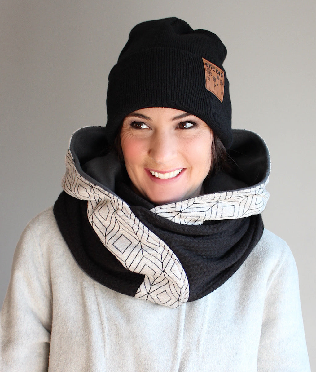 Foulard capuchon douillet entièrement doublé en polar, conçu pour les frileuses comme moi ! Il suffit d’enfiler la capuche et de faire un léger twist autour du cou, comme un foulard infini. Même sans porter la capuche, le cou et les oreilles restent bien protégés grâce à sa coupe qui monte haut. Chaud, pratique et tellement confortable, il deviendra vite votre meilleur allié pour affronter le froid avec style. Les mitaines et la tuque assorties sont disponibles dans la section accessoires.