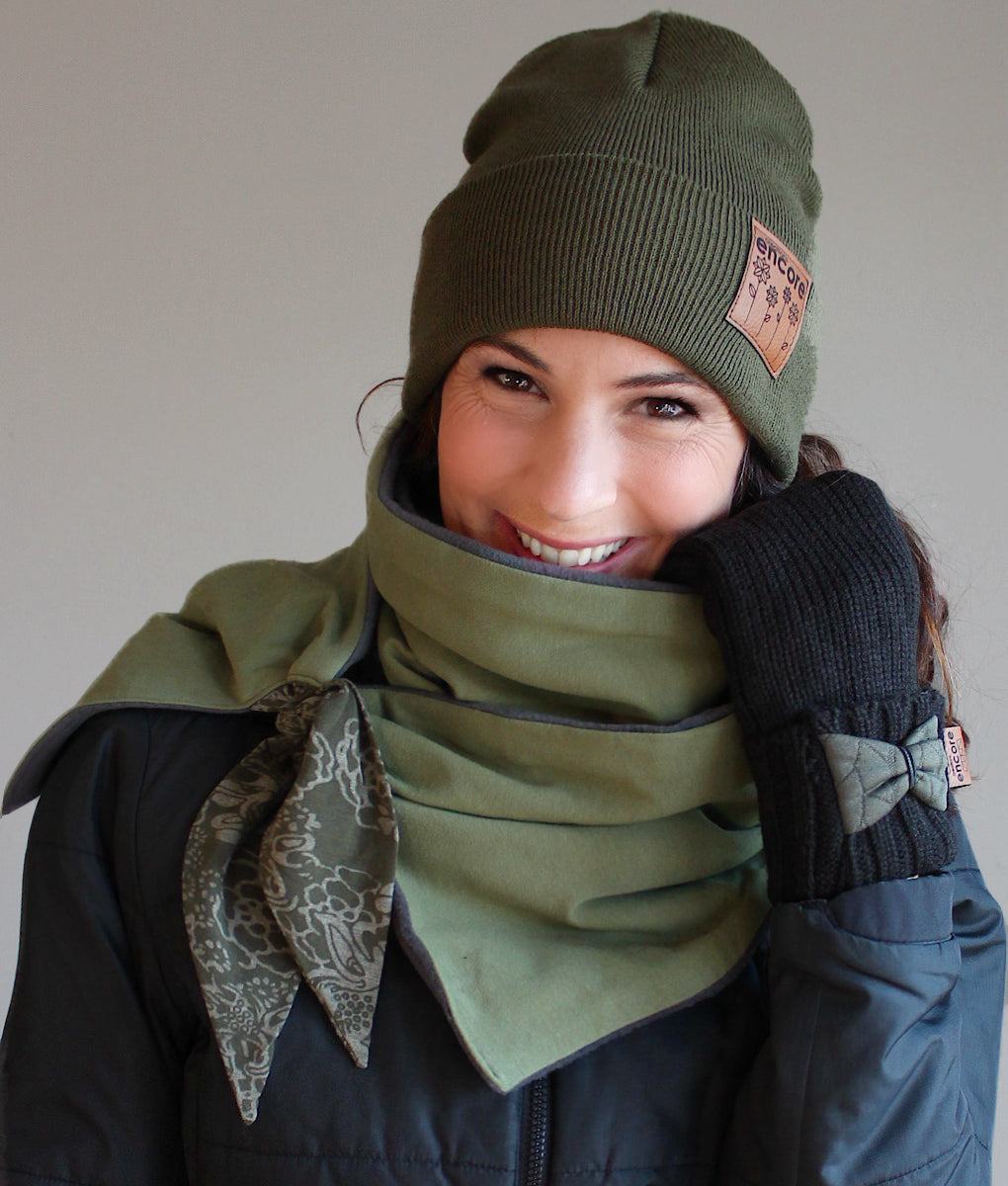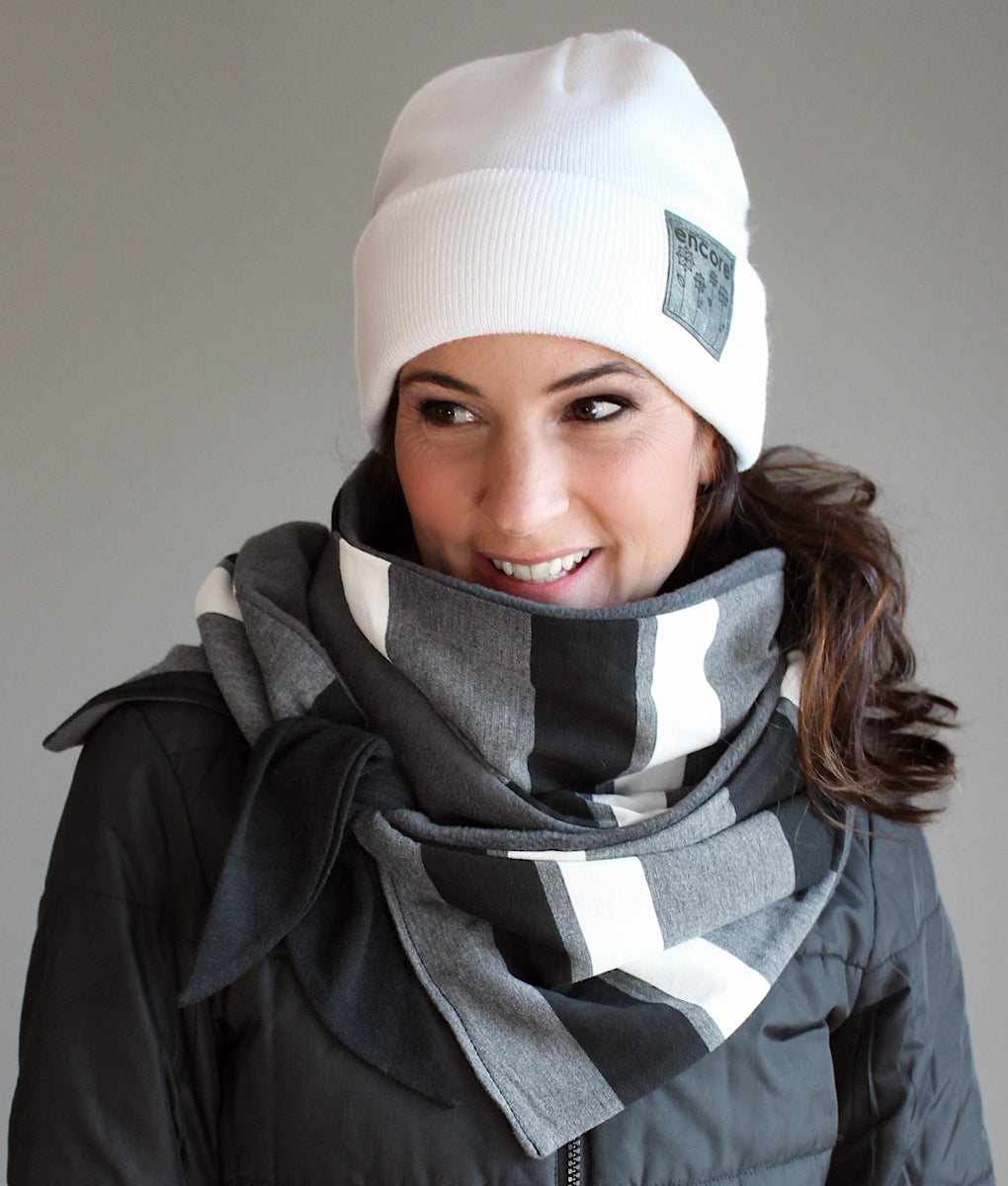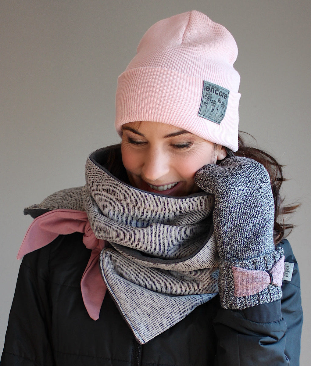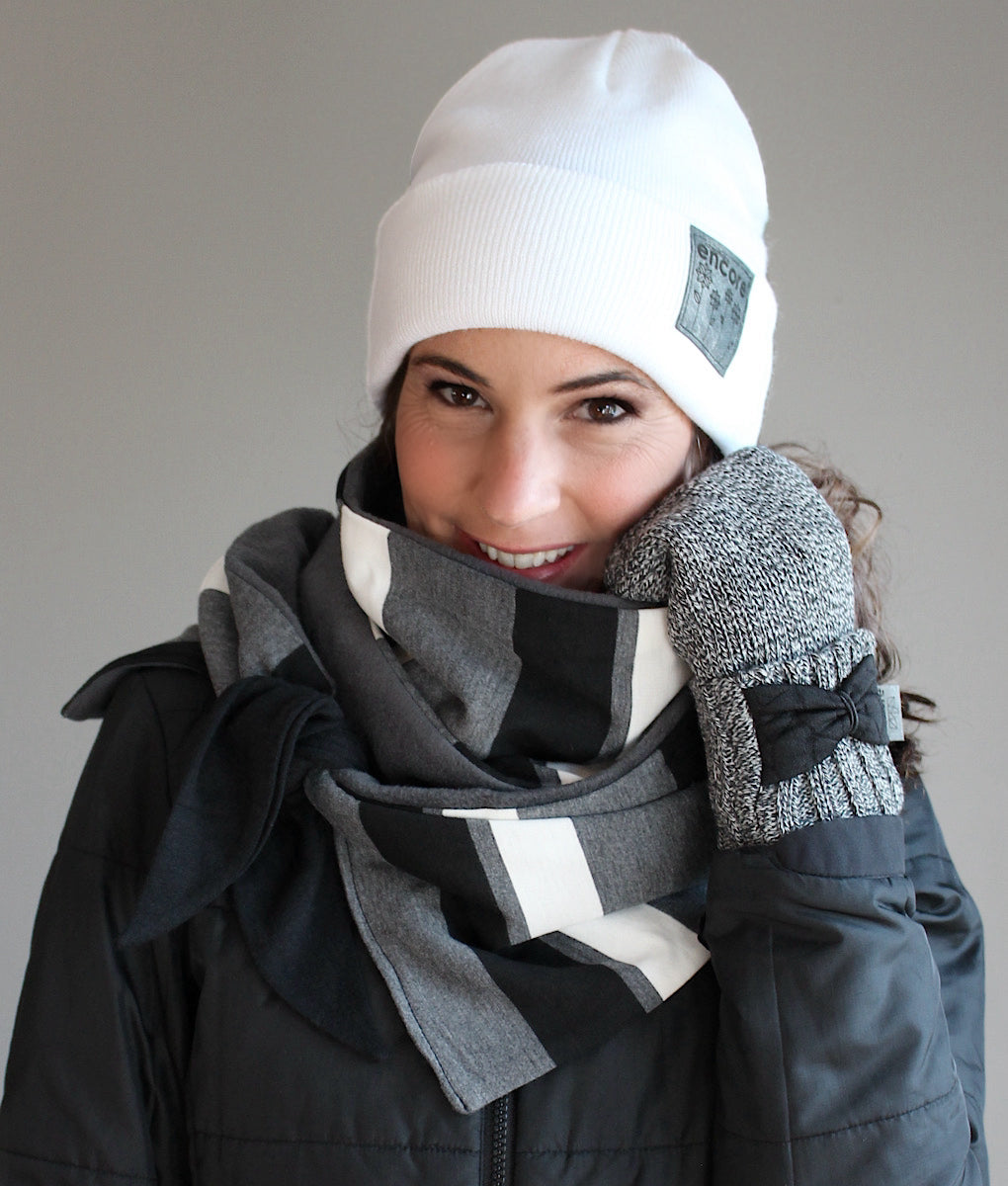 Foulard infini revisité, entièrement doublé en polair pour un confort douillet. Sa particularité ? Une poche intégrée, parfaite pour glisser clés, carte ou téléphone lors des voyages ou des marches, quand les poches du manteau ne sont pas toujours sécuritaires. Pratique, chaud et ingénieux, il se distingue aussi par sa jolie boucle contrastante à l’avant — un détail signature de Créations Encore. Un accessoire à la fois stylé et fonctionnel ! Les mitaines et la tuque assorties sont disponibles dans la section accessoires.